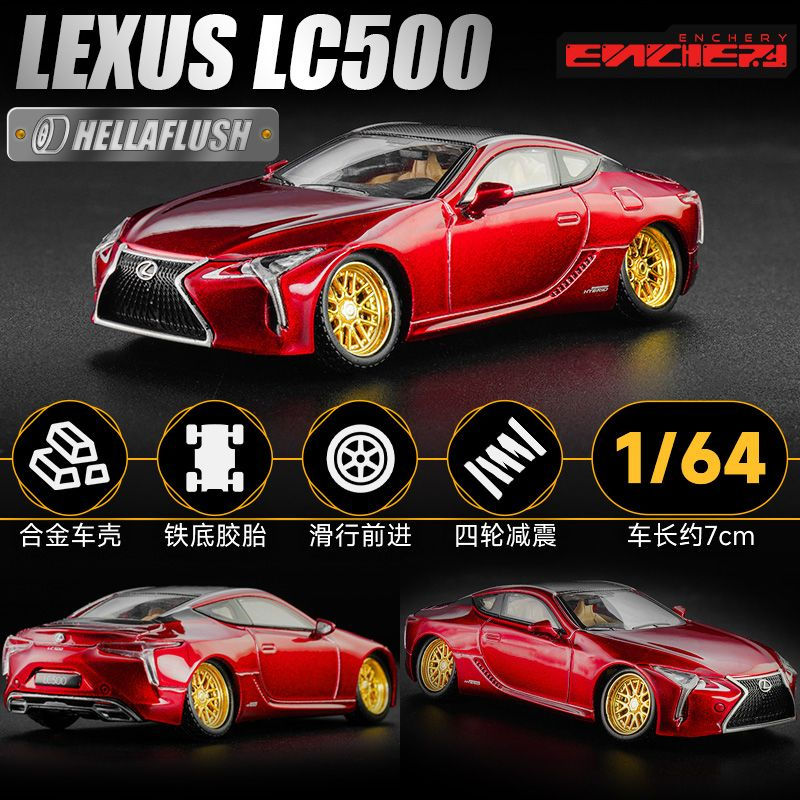 LEXUS LC 500 RED WITH GOLD WHEELS ACRYLIC 1/64 DIECAST CAR MODEL BY ENCHERY